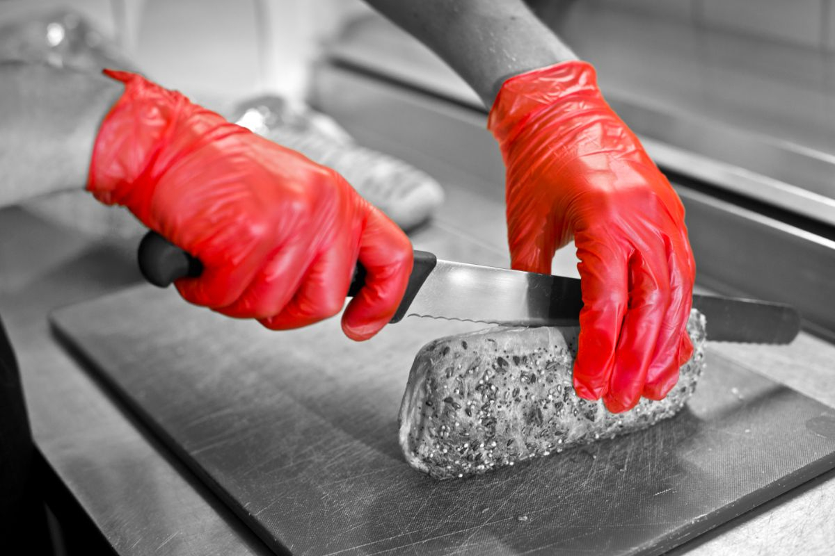 Vinyl powder-free gloves available in choice of 3 colours, red, yellow or green offering colour coding solution.