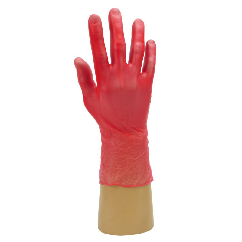 Vinyl powder-free gloves available in choice of 3 colours, red, yellow or green offering colour coding solution.